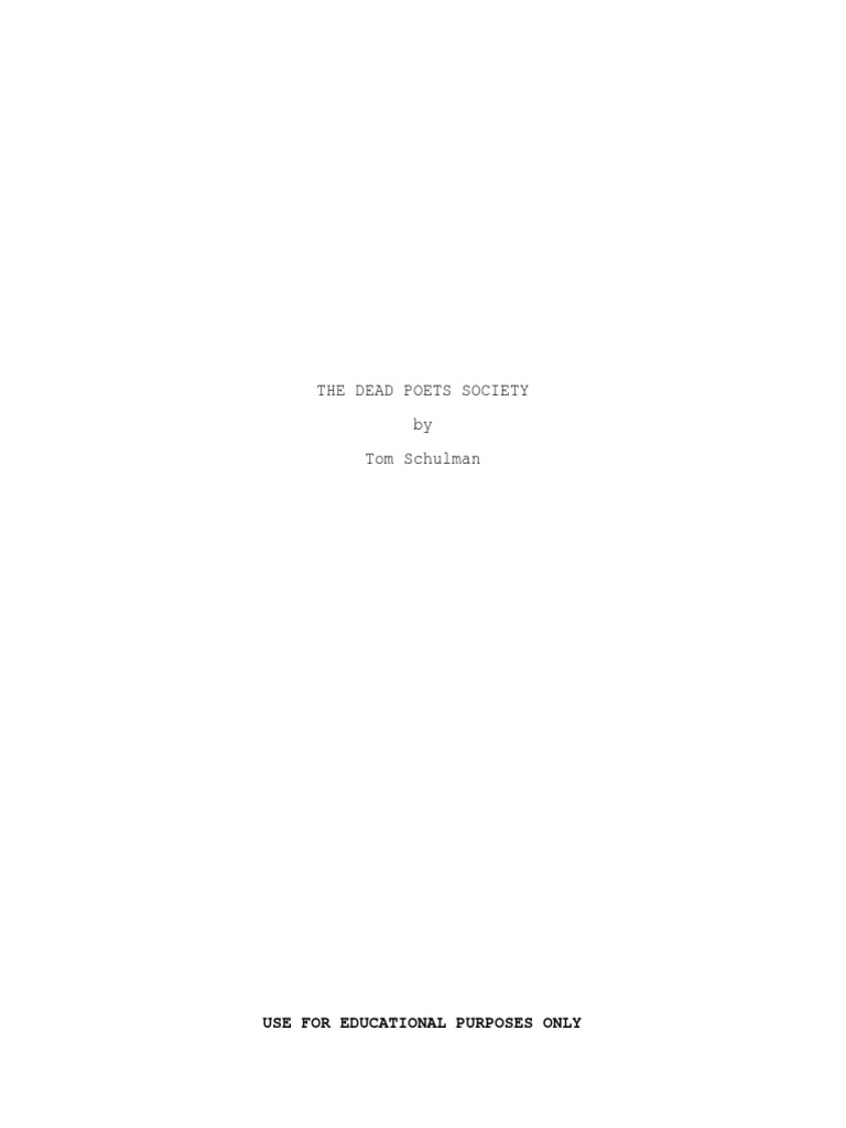 Dead Poets Society 1989 Script Pdf Br Screenplayed